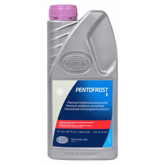 Pentofrost E es un anticongelante concentrado amigable con el medio ambiente, con múltiples aplicaciones para motores enfriados por agua. Este anticongelante ofrece el mismo y excepcional desempeño que nuestro anterior Pentofrost ++, pero es más amigable con el medio ambiente debido al proceso de manufactura utilizado; ahora se incluye glicerina a la base de glicol; no contiene nitritos, aminas o fosfatos como aditivos. Pentofrost E, protege todos los materiales utilizados en el sistema de enfriamiento y es recomendado para materiales no ferrosos. Pentofrost E puede ser utilizado cuando los anticongelantes VW G11, G12, G12+, G12++ sean requeridos y cumple con la norma ASTM D-3306.