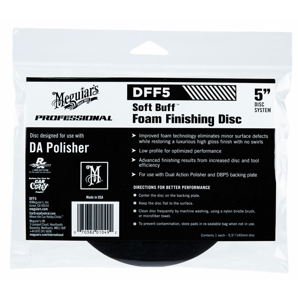 La tecnología de espuma mejorada elimina los defectos menores de la superficie mientras restaura un lujoso acabado de alto brillo sin marcas circulares. Ideal cuando se usa con una pulidora de doble acción como Meguiar’s® Dual Action Polisher y con el Respaldo Para Pulidora DA 5” DBP5 Meguiar’s®.