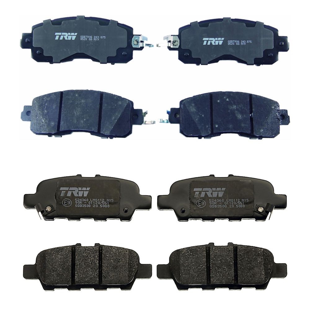 KIT COMPLETO DE BALATAS BAJOS METALES DELANTERAS Y TRASERAS COMPATIBLES CON NISSAN LEAF DE 2014 A 2017 TRW®