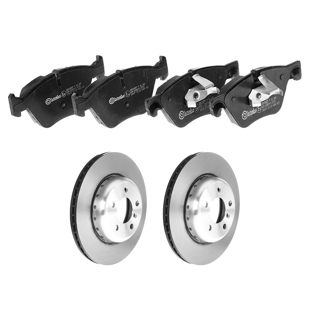 KIT DE 2 DISCOS VENTILADOS Y 1 JUEGO DE BALATAS BAJOS METALES COMPATIBLES CON BMW 528I XDRIVE DE 2012 A 2016 BREMBO®