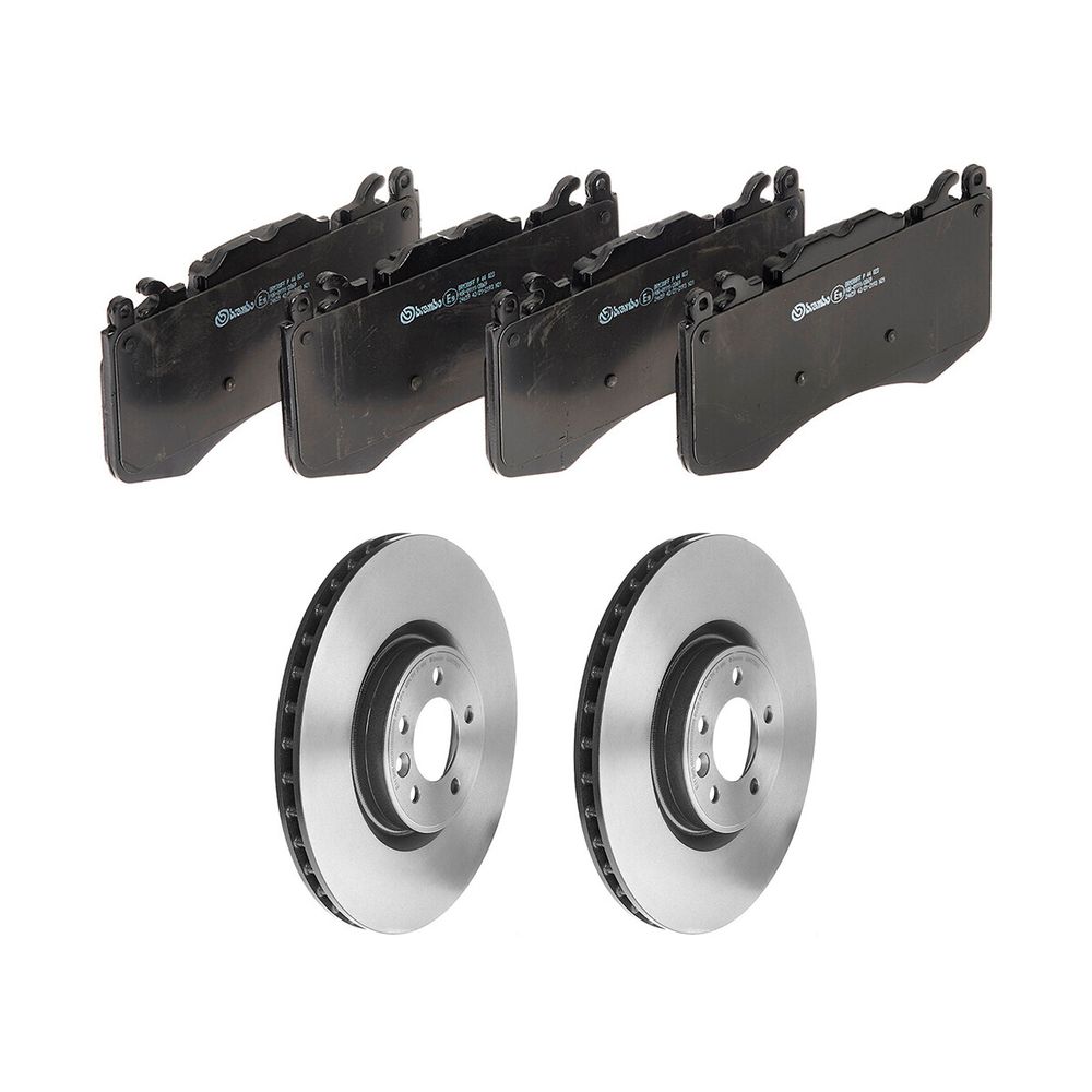 KIT DE 2 DISCOS VENTILADOS Y 1 JUEGO DE BALATAS BAJOS METALES COMPATIBLES CON LAND ROVER RANGE ROVER DE 2013 A 2017 BREMBO®