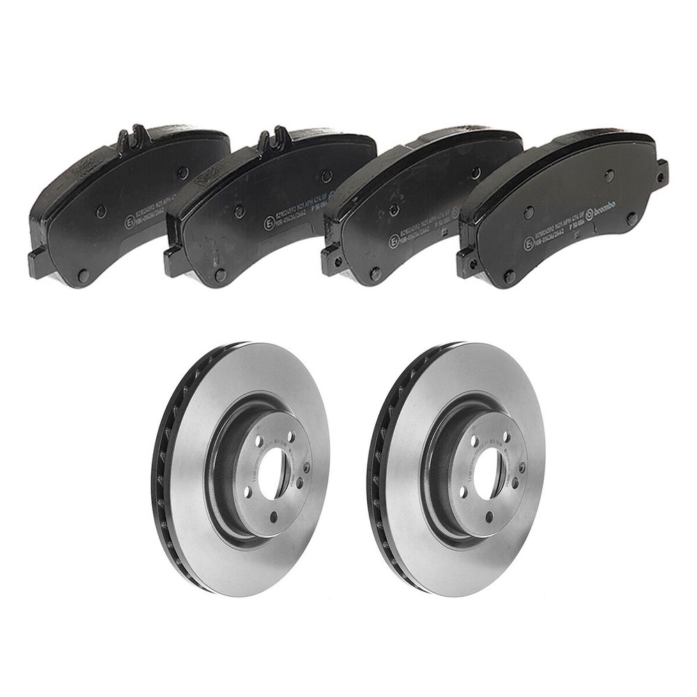 KIT DE 2 DISCOS VENTILADOS Y 1 JUEGO DE BALATAS BAJOS METALES COMPATIBLES CON MERCEDES-BENZ GLK350 DE 2013 A 2014 BREMBO®