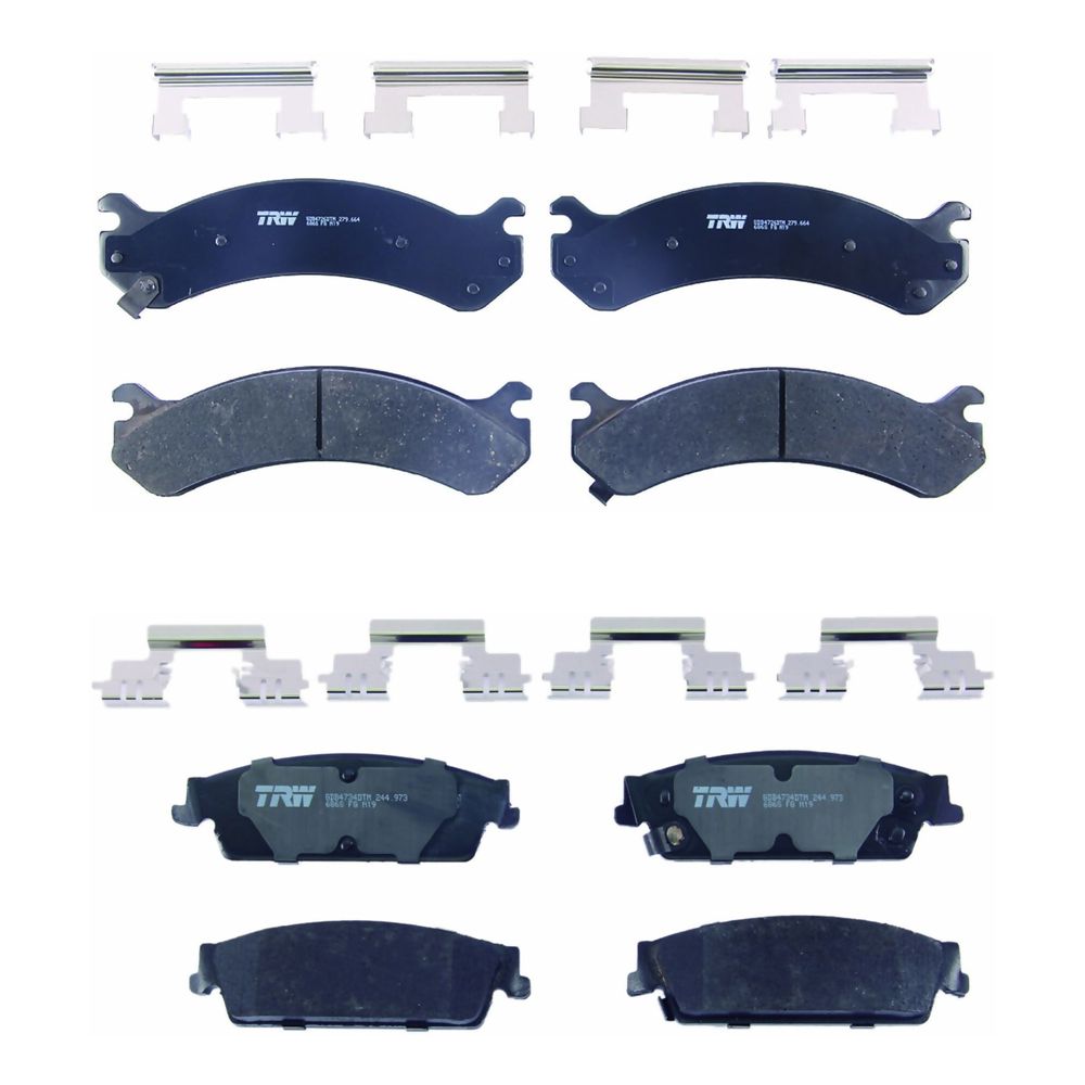 KIT COMPLETO DE BALATAS CERAMICAS DELANTERAS Y TRASERAS COMPATIBLES CON GMC SIERRA 1500 DE 2009 A 2014 TRW®