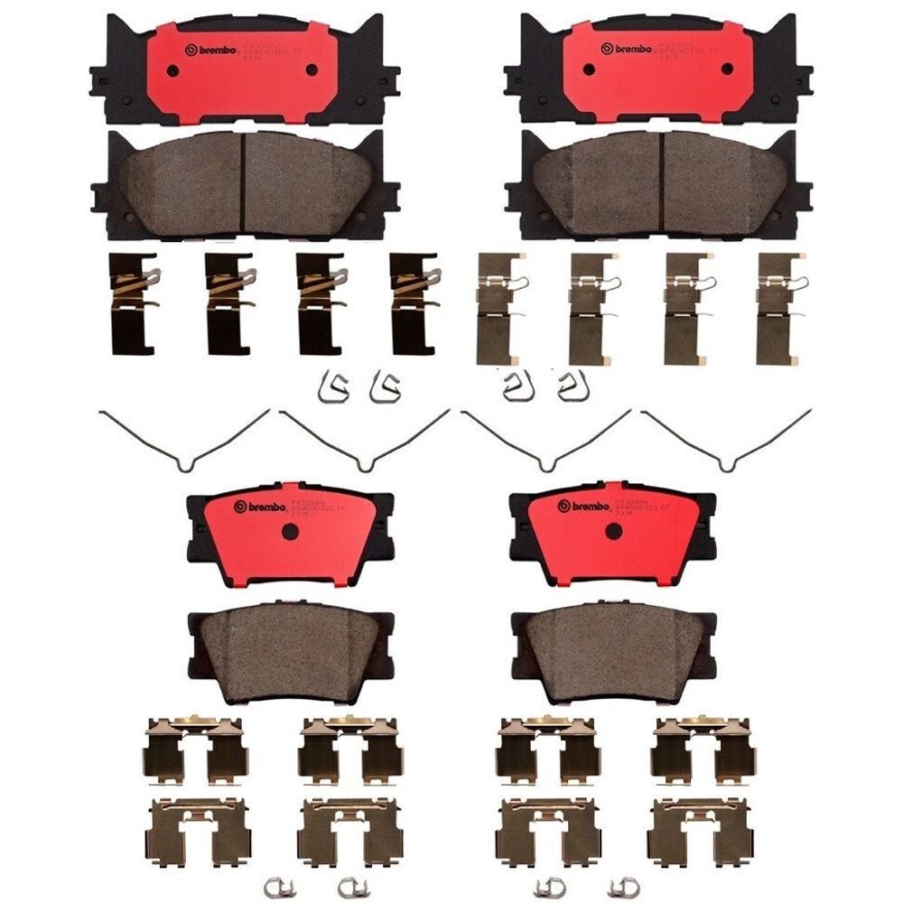 KIT COMPLETO DE BALATAS CERÁMICAS DELANTERAS Y TRASERAS COMPATIBLES CON TOYOTA AVALON 2008 BREMBO®