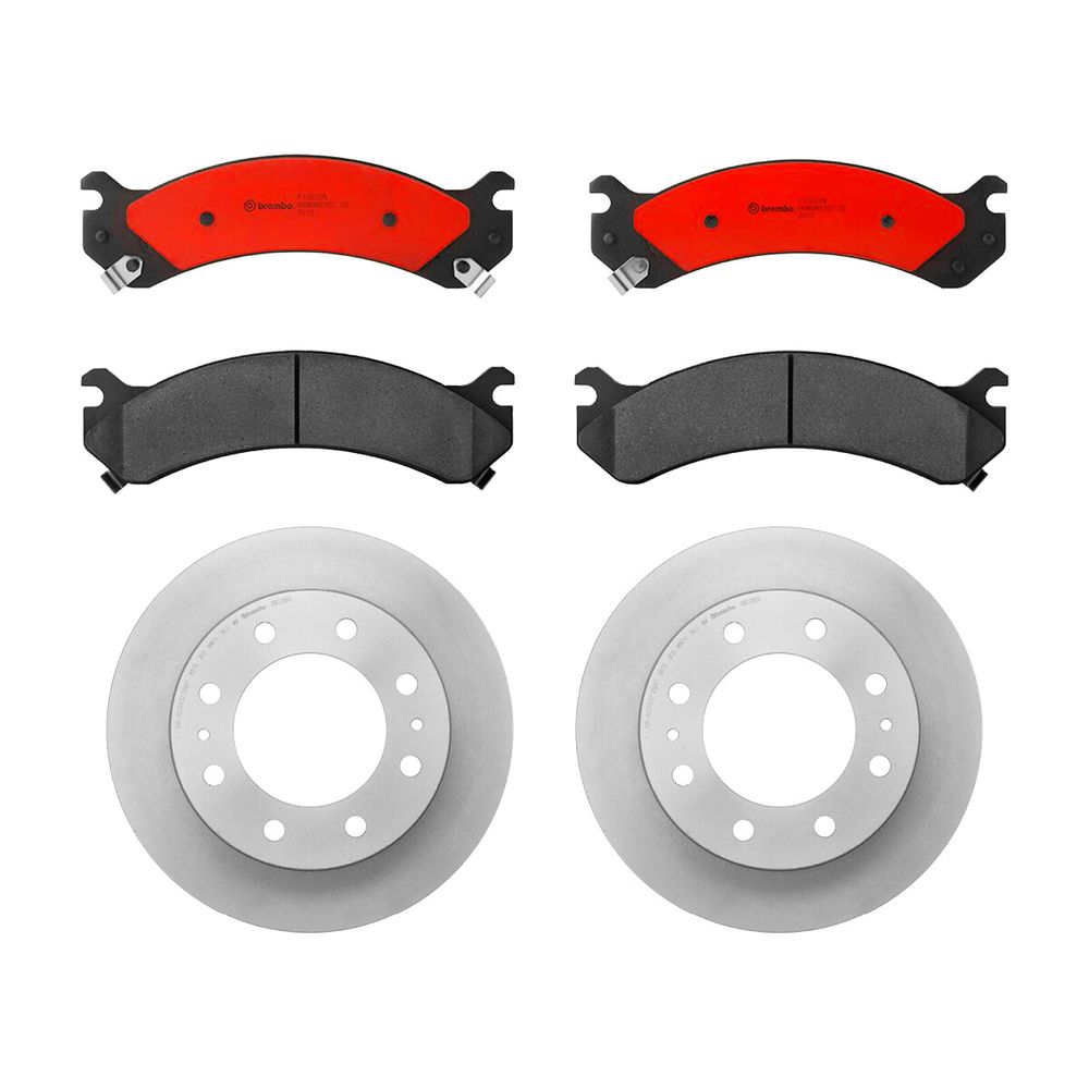 KIT DE 2 DISCOS VENTILADOS Y 1 JUEGO DE BALATAS CERÁMICAS COMPATIBLES CON GMC SIERRA 3500 HD DE 2007 A 2010 BREMBO®